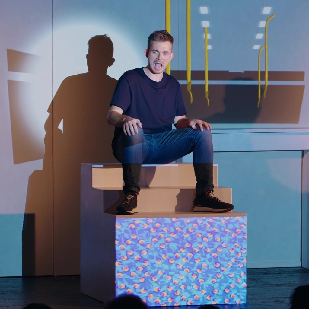 Josh and Chloe bounce unto the stage with energy and enthusiasm as they immediately whisk the audience unto a bus trip to their home town. This trip is peppered with stories of weary mums, combative women, the odd bloodied man to be either stepped over or aided…and of course the invaluable information that it is indeed possible to travel on the 117 bus with a double mattress. Once in Moston there are audio recordings and video footage of local people talking about the area and what home means to them. There is a lively visit to their terraced house where they both live with Joshs’ mum Sue. Both children of divorce in lower income families there are also the splashes of what make each of us special and unique. Chloe lived with her Grandma who was a classically trained singer while Josh was welcomed into the world like the baby Jesus of Moston with hospital visits by Caroline Aherne and the local Lord and Lady Mayors.