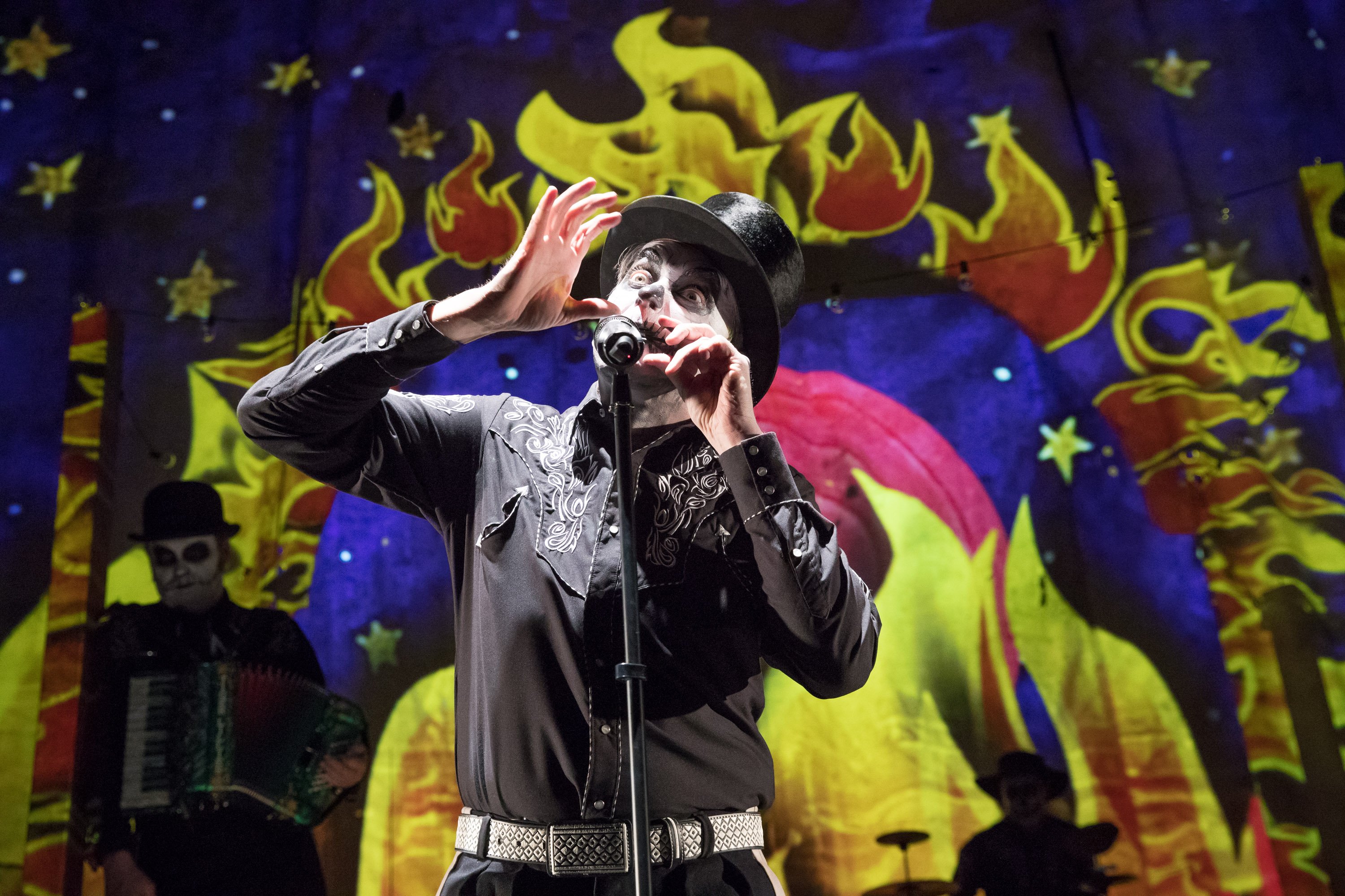 The very talented cast slinks and shimmy across the stage and into the audience to ramp up the immersive aspects of this sassy production. Think Baz Luhrmann meets Blackadder on a hen do in the Northern Quarter, with a soundtrack that pivots from catchy pop tracks and bluesy vocals to the sinister horror of a slowed down Andy Williams’ Can’t Take My Eyes Off You.
