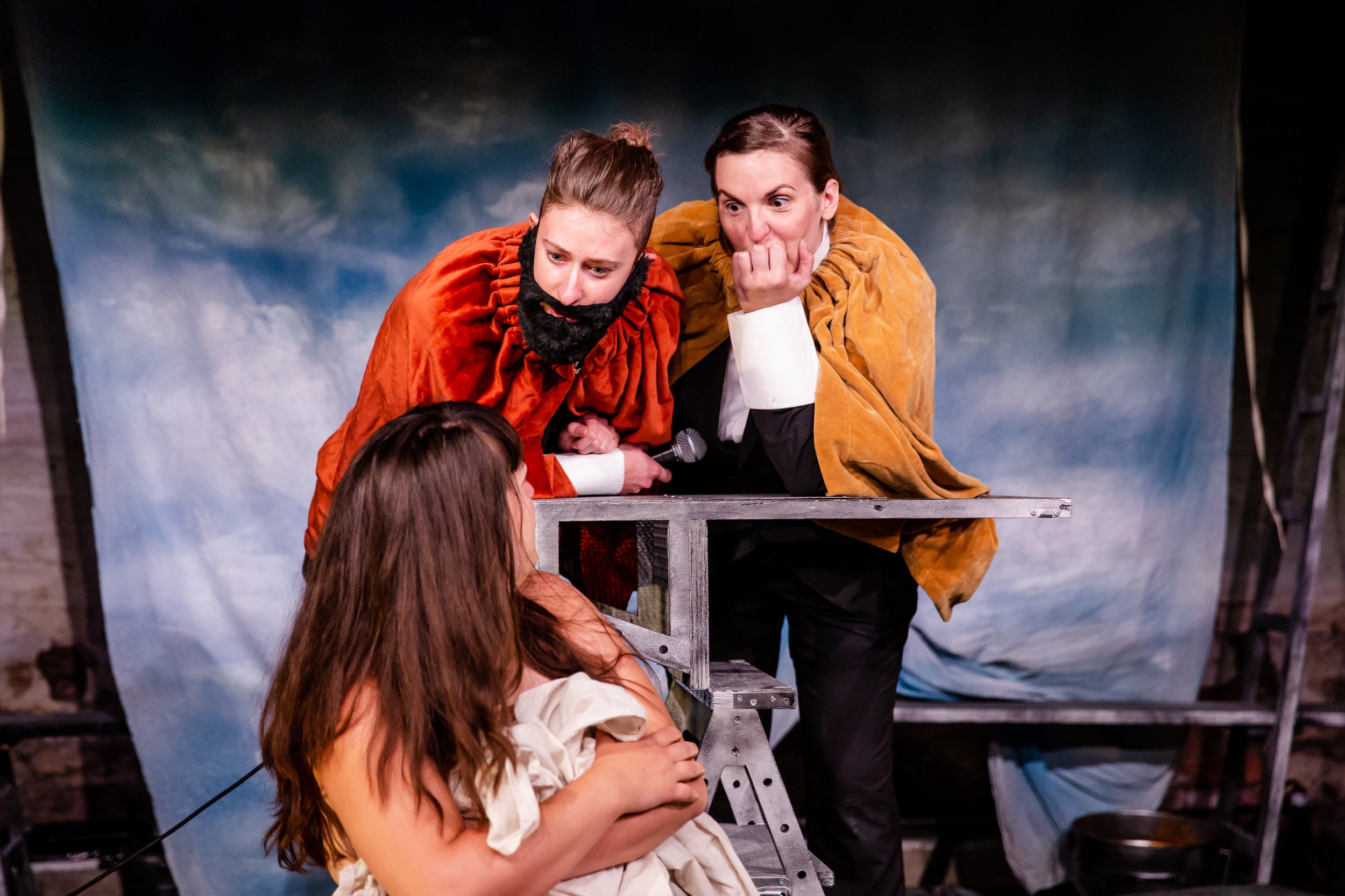 Throughout the frequent costume changes the performers reapply their white-face make up and blonde wigs as they poke fun at the imperious settlers who now seem as misguided and out of touch with reality as the current contenders for the next American presidency. Writer and Director Tue Biering has zeroed in on the terrifying reality that a mass historical psychosis where violence becomes the acceptable norm is not the dream but a living nightmare. DARK NOON lays bare uncomfortable truths and pulls its audience quite literally unto the pages of a terrifying pop-up storybook that is still being written today.