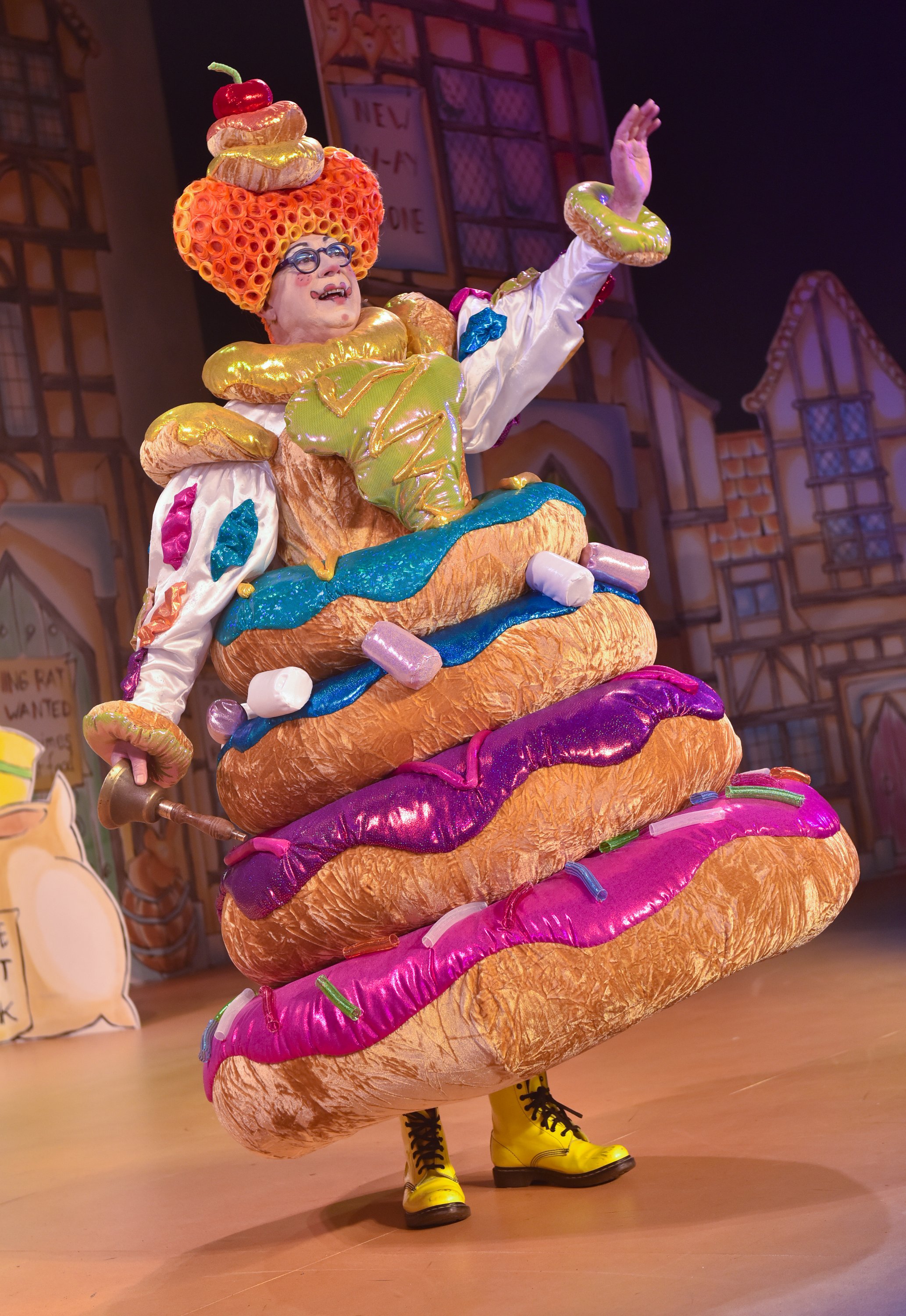 The set ramps up the fun with a beanstalk ascent that’s impressively bonkers, more DIY-in-the-best-way than Disney, and all the better for it. And when the giant finally appears… well, let’s just say the Designer Katie Scott clearly had a very good time and the result is delightfully unhinged.