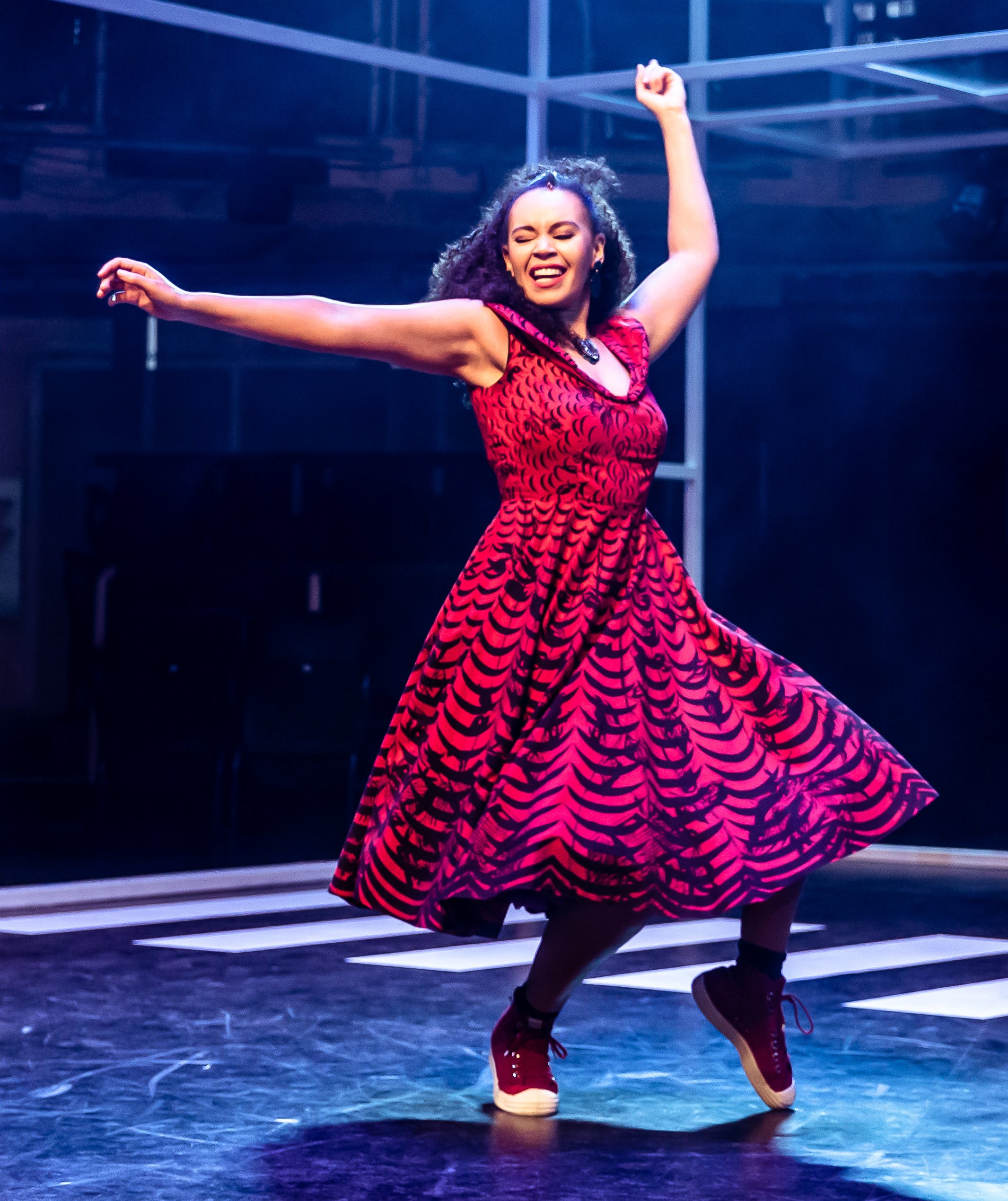 Live music underscores scenes with a throbbing, modern urgency from a score by Dom Coyote with music from Joy Division, Kate Bush and Jimmy Somerville interspersed with a hymnal poignancy delivered by the Chorus. The lighting design flips seamlessly from neon brashness to candlelit intimacy. The costume design fuses modern street fashion with that of Tudor times, with every costume having flashes of blood red suggestive of the impending tragedy.