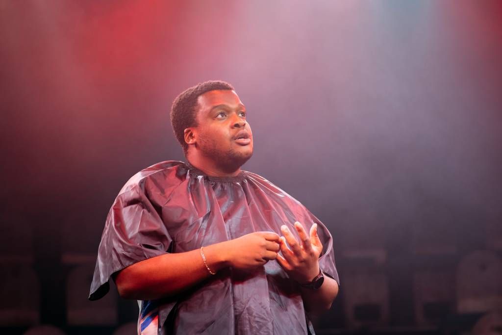 This one hour monologue celebrates thewriters’ home city of Birmingham as Queeley-Dennis bringstolifehis local barbershop, the call centre where he works and his favourite rum bar via dark Techno clubs and rooftop vistas at dawn. Watching this performance in the round is like witnessing a masterclass in how to deftly work the room as an accomplished stand up comedian. Fluid delivery and perfect timing ensure that every carefully crafted line lands exactly as intended. There is a vivid poetry in scenes that describe his almost erotic connection with his barber or his cautious stepping into the world of his beloved Techno which has been appropriated and whitewashed. Dotted through this monologue are carefully placed options in his life that include picking from a trio of emergency barbers or a trio of emergency toilet states. They all in their own way allude to a sense of anxiety or otherness at odds in this seemingly happy well adjusted guy in his mid twenties.